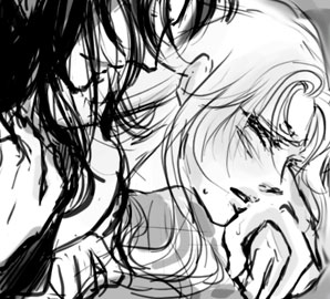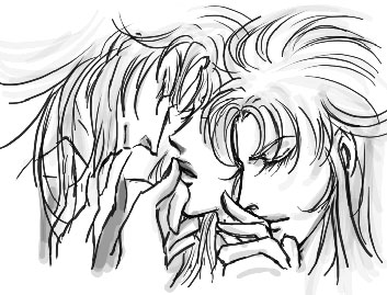 もしも恋よ、それが善きものなら 何故死にいたるまでにそれはむごいのか またもしも悪しきものなら 何故にかくもその苦しみは甘いのか Ma s'egli e amor, perdio, che cosa et quale? Se bona, onde l'effecto aspro mortale? Se ria, onde si dolce ogni tormento? Francesco Petrarch 黒サガ…やっぱり黒といったらこの人が出てきてしまうのですよ!そしてわたしの脳内のお花畑っぷりは清清しいほどです(開き直り)。献詩とか最高に恥ずかしいの分かってます。しかしですね。捏造に捏造をかさねまくってみても、どう考えても黒サガはこんなことしないだろうと思うんです…。仮に胸に優しく抱いていたとしても絶対どっちかの手がよろしくないことをしていそうです。 訳詞は若桑みどり著『マニエリスム芸術論』pp.115-6.より。原文はネットからで原典確認してませんが多分これ。一行目は意味を補うために残しました。アクセント記号は省略。 できるなら自分の言葉で飾りたいけど、今は言葉が出てきません。やっぱりこの二人が好き。どうしようもないです。好きすぎる。20日 |