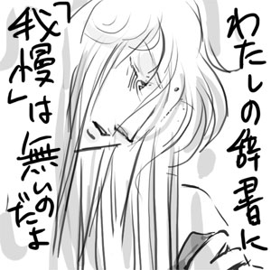 | お宝シャカムウ漫画! なんとうちの我慢できないシャカのために3DOTの瀬川ハイジ様から漫画をいただきました!! 内輪のしょーもないネタに反応いただいてありがとうございますーv 本来お宝に飾るべきですが、まだサイトが休止解除できないことに加え、 この×地点ネタなので、まずはこちらに飾らせていただきます。 テーマ「我慢」 もう拝見してわたしこそ我慢できず即、落書きをお送りしてしまいました。 それも飾ってくださるそうです 何よりもこれを一人占めはもったいなさすぎます! 瀬川様ありがとうございますvvv 16日 **************以下メモ**************** シャカとムウ様メモ〜我慢の限界を迎えて〜 今脳内シャカ度が高くなってます。 こうなるとネタが止まらないので、整理も含めてうちのサイトのシャカとムウ様について、 おもいつくままにメモ。前に書いたのと重複してるかもしれませんが 書いた本人すっかり忘れてますので、大目に見てやってください。 (前提) うちのサイトのムウ様はシャカに対してまだまだわだかまりがあります。 わだかまりまくりまくりまくってます。 シャカへの羨望やら不満やら不安やらも含め「友達」にとらわれてウンウンうなってます。 シャカに対しての悩みは根っこが深いようですが、これはなぜか…。 1.ムウ様から見たシャカ 〜どこがとくに問題なのか〜 シャカは常に大極を問い、本質を見ている。というより多分本質しか見てない。 (教皇は正義だを始めとする発言にそれが端的に現れていると思います) だから現実社会で微妙な齟齬が生じる。気づいていないのは本人だけ。 ムウ様はそこの天然さの「さじ加減」に多少慣れているから話ができる。 もれなくついてくる神仏もまた、ムウ様的には多分理解の範囲を越えているでしょう。 (ここで神仏と常に対話する設定を「比喩」にしてしまえば シャカも一人の人間として動かせるんでしょうけど わたしは個人的に奴は何かが降りてくる・あるいはどこかにまで昇ってゆけると 確信してるので(根拠はないです。直感笑)、本当に神仏と喋ってると思ってます。 たとえるなら神仏の電波を送受信できる「アンテナ」を持ってる、みたいな。 でもその電波的「アンテナ」はスイッチ式でオンとオフしかなくて、 (そもそもそれは「アンテナ」ではないというつっこみは無しの方向で;) 他の周波数を拾えるような幅がない。だから人の雑音を拾うのは苦手なのです。 同時に、シャカは興味がないものはほぼ100パーセント、遮断できる人だと思います。 尋常でない集中力を要求する大技は、そのあたりが基本なのではないかと。 だいたいそうでなければ小宇宙が高まるからって「目を閉じていよう」とか考えない笑 しかし、そんな「アンテナ」でもシャカにとっては大切な一部であるはずなのです。 でもムウ様を愛すると、それを含めていろいろと捨てなければならない。 (というか多分全部捨てます。) ムウ様のために少なからず、傷ついたり待ったりしなくてはならない。 (これも多分信じがたいほど耐えると思います。) シャカは嬉々としてそうするだろうけど、多分それはムウ様の望むところではない。 その「アンテナ」がシャカらしさの根源にかかわると思い込んでいるからためらうのです。 さらにシャカの自己犠牲は超絶マイペースと表裏一体で、 全てを差し出すかわりに全てを要求する。 その、全てを投げ出すのがムウ様は怖いのかもしれませんね。 多分、全てと思っていた存在を失っているというトラウマが大きいと思いますし シャカについてはただでさえ目の前で一度死んでるので達観できない。 死別に限らず、恋愛沙汰に関しては成り行きとはいえサイトで裏切りまくってきたものだから いつか報いが来るとどこかで思ってます(ムウ様そんなに腹黒くなれないよ説)。 だから「因果応報」とかいいつつ、当然のようにシャカが離れてゆくのが怖い。 何だかんだいって唯一の友達も失うことになるだろうから。 こう考えると、シャカと間違っても離れたくないのは、実はムウ様かもしれないですね。 幼稚で不条理で自分勝手だと分かっていても、まだどうにもならない、心の根っこの 一番難しいところに居るんだと思います。 そういう大人になりきれないあたりで悶々としてほしいのですよ。二十歳だし。 まあ、ご存じのとおり、サイトは生ものですからどうなるか分かりませんけども。 それだけムウ様にとってもシャカの存在は大きいのです。 うん、強引にまとめてみました。 2.シャカにとってのムウ様 〜惹かれる理由とか本人無自覚なあたり〜 シャカは十二宮戦までを見ると、子供の嗜虐性もそのままにまっすぐ育ってきて、 敵=自分を拝まない=降参しない弱者に対しては慈悲も容赦もなく切り捨てるところが 世間知らずで人知らずで、そのあたりの感覚は神に近い視点だと思います。拝めとか。 常人離れした巨視的なイマジネーションが必要ですよねきっと六道輪廻とか。 サガの背後の銀河がそのま