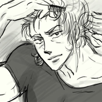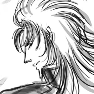 以下独り言。 いやしかしここのログをざっと見てみると、自分の絵って 錯綜してるっていうかいまいち安定しないっていうか そのときごとの線の太さとかノリによってバラついてますね。 今日の蟹と羊はタブレットの一番細い線で描きました。 幅1ピクセルで原寸大だとこんな感じ。 線が太いほうがざっくり描けてるような気がします。下のムウ様とか。 ううむ…。客観的に見たらどうなんだろうか見当もつかないです。 見苦しかったらご容赦ください。 下書きすると多少奥行きらしきものが出るんですけど、 自分の絵は下手に三次元っぽくすると気持ち悪くなるので、 できるだけ車田風絵から離れないようにしようと思うんです。 ううーむ。まだ「どう」描いたらいいか皆目検討つかず、模索中です。 「何を」描いたらいいかっていうのはもう、それはいつどう考えてもムウ様で、どうしても描きたいので仕方ないのですが! 絵よりほんとは四コマなんですけど、四コマ描いたらどんどんネタが出てきて原稿落としそうなんで やはりちょっと封印してます。 あんまり落書きばかりなのもどうかと思いながら妄想で連続絵をしてみたけど…画面的にはさらに微妙になっただけという気がします。もーどーにもならないですね。 そして相変わらず色が塗れないこと!どうなってるのやら。 いつも処置に困り、結局投げてます。 カラーで綺麗な絵を描かれる方、本っ当に尊敬します。厚塗りとか水彩とかどうなってるのだ! いやまあ、時間もないしここは白黒って決めたんですけども…。 そもそも一定時間以上じっと座ってられないというか… ええい!うだうだとスミマセン。 しばらく気持ちにも物理的にも余裕がないので、 落書きのみになりますが、よろしくお付き合いください。 11月3日 |