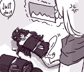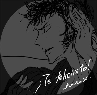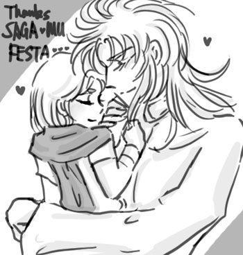 (↑筋肉少女帯のほうで。Bee Geesのほうはどっちかっていうとシャカムウかな〜)あの、祭の落書き四コマですが、お待たせしてスミマセンでした。ここのとこ帰ってこれませんで。ま、内容もスミマセンというかいつも通りというか純愛とも変態ともつかない話ですが、わたしが先の展開を考える間もなく、サガとムウ様がそれぞれ止まらないっていうのは不思議でした。 まあ、やばいかもしれませんが、ノーマルか否かなんてそんな線引き誰が決めたんだっていう…でもやっぱり恥ずかしい話です。しかしこれもお祭がなかったら妄想に留めていましたよ。本当にありがとうございました。 100131 |