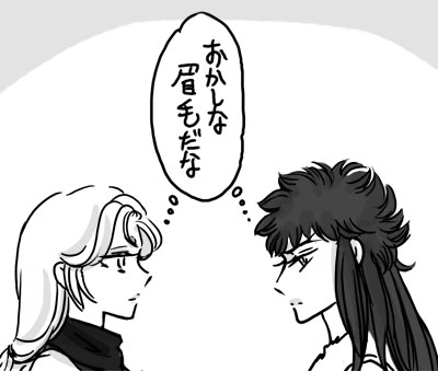 ちょっとつぶやきなど Top絵が思いのほか好評みたいで嬉しいです。寒そうで恐縮でしたが…。あと光政も。皆さんわりに変…いや、お優しい。 あの、まあ、教皇様、シオンかサガ、お好きなほうで〜v この位置だと跪拝してますね。 ムウ様が心の底から許しきってその首を預ける相手といったらやっぱりシオン優勢ですかね。 ほんと、拝みますよ!ああ、理想はジャミールの山々より高い。 1月、折り返しましたね。灰色サガムウは今まだ途中ですが、性分的に終わらせないとアンソロ移行できないような気もして(なぜならアンソロではこれでも幸せ系な話を書こうと思ってるんですよ!頑張る)しかしそろそろアクセル全壊しないとアンソロすら怪しい気がしてます。そのためちょっと篭るかもです。 で、そんなときだから改装ってわけではなくってですね、複数の方にご指摘いただいたからなのですよ。 先日もヲタのお友達より貴重なアドバイスをいただいたのですが、うちはちょっとコンテンツがカオスだと。 カプによって苦手なものがある人には地雷原を歩くみたいなものらしいので…。またカテゴリー分けも恣意的で分かりにくいらしく、油壺がまたわけのわからなさに拍車をかけてるっていう…笑 (いやこれでも、昔は、「四コマ」と「その他」しかコンテンツ分なかったので、改善はされている…はず?) 昔、カプごとに分かれるサイトさんに感動して、うちもやりたいなあと思ったのですが、 …そもそも分かれてないんですよね。カプが。というわけでさっそくくじけそうです。 しかもなんですか、テキストと絵と分けようとしてもなんかくっついていたりして…もう、みたいな。どうしたらいいのか考えてるうちにヲタ時間のリミットが来てしまったり、朝が来てしまったりして。そもそもタグをいじってる暇に四コマ一本描けるじゃないかと思うとどうしても制作のほうを優先させてしまって。そしてまあ、ご覧のとおり昔の作品とかあまり直視できないものも(…恥ずかしくて死にそうになります)で、結局このままなんでした。 しかしですね、 「○○はどこに」 「○○?ええと〜あったと思います汗どこ…だったかな?ええとそれはわたしもよく分からない・・油汗」 というのはあまりにも管理人失格ですよね。埋もれてるの発掘くらいはしようかと。 あ、あとはそろそろ5周年ということで、さすがに ダミーエンターみたいな妖しげな手のアイコン置きっぱなしのindexページとかなんとかしようかなと。 (あれ、わたしは自分でだまされました。紛らわしくてすみません。)あといらないものが多すぎる…。 間違えて消しても大丈夫なようにバックアップして、ちょろちょろ改装しようと思います。 ってなんか書いててまさに試験前に部屋の掃除する中学生みたいですけどね。 ↓のシュラはそう、マニアックな彼です。 あのシリーズもオチがあるのにまだオチてない・・何年目でしょう。 でもどうしてもムウ様優先してしまうごめんなさい…。 100115 |