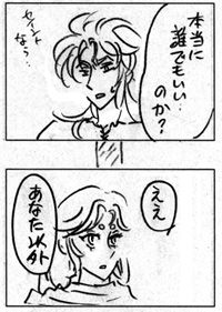 脳内劇場設定まとめ ムウ様:黒サガによって1人の男では満足できない体にされる。 シオンにまつわるトラウマは濃い。 サガ:罪の意識に苦しみつつ自己愛と生真面目さとで揺れ動く。 誰よりもムウを愛していると思っている。 シャカ:ムウを愛している。 デスマスク:どうしようもなく女癖が悪い。 ムウとうっかり関係してからは挙動が不審。 アフロディーテ:男にだらしないムウが嫌い。 シオン:ムウの生殺与奪権を持つ師父。シオン ∋ムウ。 他は基本友情設定です。 ちなみに最初のシナリオはこんな感じでした。 シオンの言葉から逃れられないムウは、次第に精神のバランスを欠く。 サガに頼まれムウの心身に無理矢理に押し入ったシャカは、その深奥に 黒いサガが居たことを告げる。 ムウは自分は「本当に」師を殺した男を愛してしまったと絶望する。 サガは嫉妬に狂いムウに酷く辛くするのを止められない。 二人は罪を悔いながらすべてを裏切り、罪を重ねることにしか 救いを見出せなくなってゆく。 苦悩の果てに、ムウはシオンの膝元にその首を投げ出す。 シオンは「悔い改めれば許す」と言うが、ムウはサガを愛した身のまま 討たれることを望む。シオンの手が首に触れた瞬間、ムウは「逆らわば死」 というシオンの言葉に全てを委ね微笑む。 なんというか、重荷に押しつぶされる感じです。 じわじわとおかしくなってゆくムウ様が描きたかったんですけど、 そういう方向に行くとどうしてもバッドエンドなので、避けました。 満ち足りた死こそが人に与われうる最上の幸福であるとする女神ヘラの託宣にそえば、これもまたハッピーエンドなのかもしれないですが。 ラダマンティスは、個人的なメッセージでした。もしも伝わったら嬉しいです。 ラダムウが意外にも好評だったので、短いテキストなど→■ 2011年4月3日 |