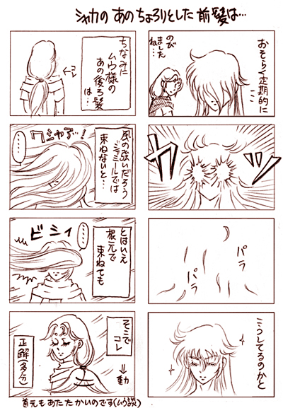 追記:実ははるか昔にチラシで書いたネタです。シャカは真ん中の長い髪が食事に差し障るくらいでコレをやっているのでは!という考えは変わりません…。