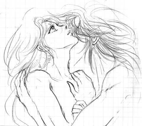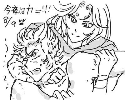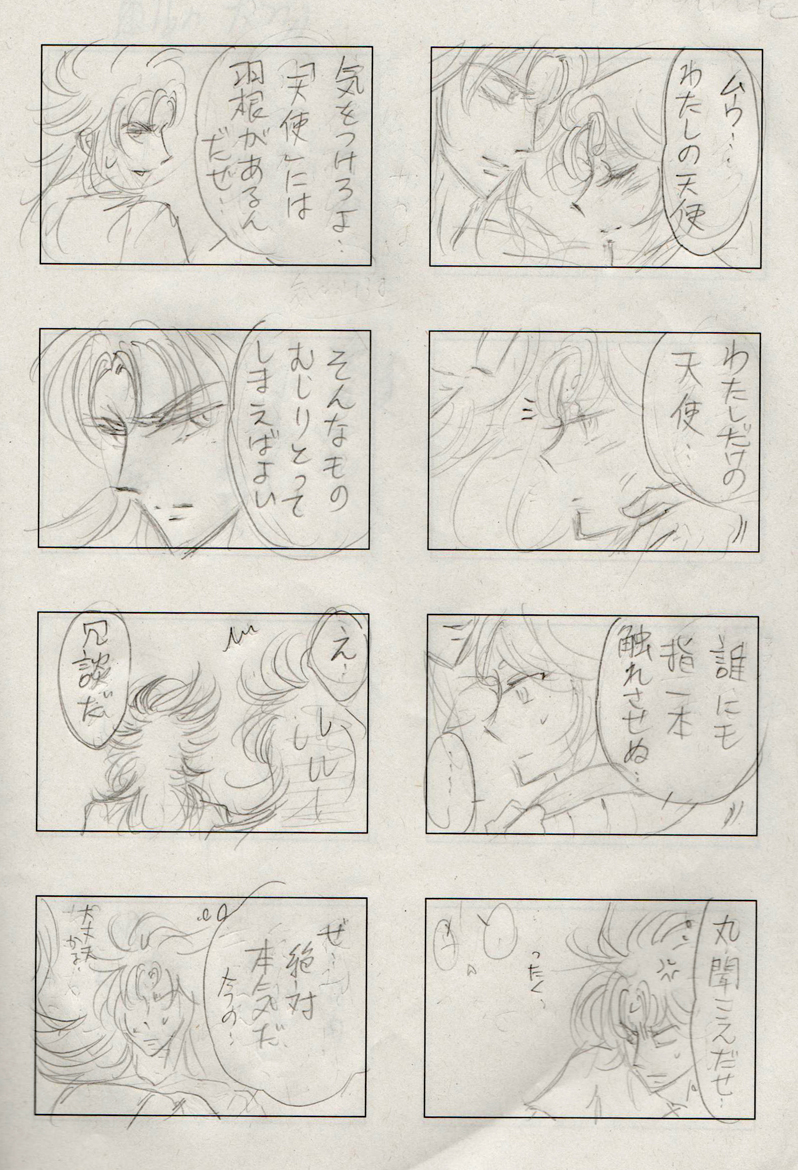 ハーデス編の処女宮でのシャカの独白は、最期に四季の移り変わりに着目したところが、例えば晩年の良寛の「春は花、夏ほととぎす 秋は月 冬雪さえて涼しかりけり」の境地に似たものを感じました。とても日本的。生々流転のその奥底にある、万物が繰りかえすという永続性は、おそらく永劫回帰のような凍りついた「永遠」ではなく、たとえば北極星のようにたまたまそこに不動に見えるものかもしれない。そういった全ての変りゆくものを景色の中に見つめるという姿勢。あのときのシャカには確かに、この世との決別という気持はあったと思います。 シャカのあの独白があまりに率直なので、昔はそこに二十歳らしさを感じて納得していましたが、実はもう少し奥が深いのかなあと。そしてあの台詞がいかにもすんなりと読めるということは、読み手である自分もまた日本人的な捕らえ方をしているのだなあと思いました。 あんまりにもメモをサボってしまったということもあり、…いろんな意味でとっっても恥ずかしいのですが、2005年のシャカとムウ様の『おかしなふたり』より自分の担当分を一部公開します→■ もうね、羞恥プレイは 最初はまさかの健全ブログになるかと思っていたのですが、女性向けも入れたほうがいいかなあなんて話しているうちに雲行きが怪しくなってきました。しかしまあ、拙宅にいらっしゃる方々は、すっかり大人でわたしの変態趣味をご存じとばかり思っていましたので、ついはっちゃけてしまいました。しかし今後気をつけて注意書き載せますね。 わたしのはホントに掌サイズの無印のメモ帖に下書きもせずに一発描き的な乱暴さで恐縮です。上手い人がやれば走り描きですら美しいんですけどね…。 しかし拙作、下心と萌えだけはあります!ってことで。色々見苦しいのは承知の上です。ひらにお許しください。 右はらくがきの没、左はメモに載せようと思って描いたもの。う…うん、大して変わらないですね。 130503 |