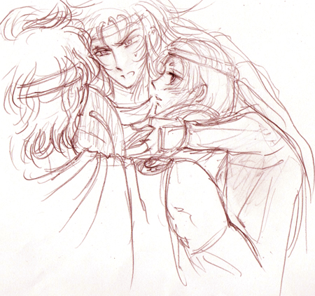 神謡 落描きを載せるついでに、まえにちらっと書いたクセノフォンでも。 (まさにとってつけた感100%) 『アナバシス』はクセノフォン/クセノポンが傭兵としてペルシア戦争に参加したときのリアル戦記(敵国脱出)ルポルタージュなんですが、ギリシア意識にあふれていて、端々でニヤリとせずにはいられません。で、当然のように同性愛ネタが、しかも少年愛ネタがあるのですが、もうこれ、超有名なので、星矢サイトではひっぱりだこだと思って今更感があるので紹介しなかったのですけどもやっぱり書いときます。 7巻4章の7〜11引用します。(『アナバシス−敵中横断6000キロ』、クセノポン著、松平千秋訳、岩波文庫 青603-2 2009(1993)、pp.330-331) 「さてオリュントスの出身で男色の性癖のあるエピステネスなる男がいたが、漸く青年になりかかった年頃で、小楯を持った美少年が殺されようとしているのを見ると、クセノポンのところへ駆け寄って、美貌の少年の命を助けてやってくれと嘆願した。そこでクセノポンはセウテスの傍へ行って、少年を殺さぬように頼み、エピステネスの性癖を説明して、この男が嘗て隊を組織した時、隊員が美貌かどうかということだけしか考えなかったこと、その隊を率いて見事な働きをしたことなどを話した。 セウテスが訊ねて言うには、 「エピステネスよ、君はこの少年のために死ぬ覚悟はあるか。」 エピステネスはセウテスに頸をさし伸べて言うには、 「この子がそうせよと言い、それでわたしに恩を感じてくれるのであれば、斬って下さい。」 セウテスが今度は少年に向かって、彼の身代わりにこの男を斬ろうかと訊ねると少年は、それは止めてほしい、二人とも殺さないで下さい、と嘆願した。この時、エピステネスが少年を抱いて言うには、 「さあ、セウテスよ、この子をとるかとられるか。今こそ私ととことんまで戦うべき時ですぞ。私は絶対にこの子を離さぬからな。」 セウテスは笑って、その件はそのままにして話を打ち切ってしまった。 英訳もあります(Project Gutenberg)。 http://www.gutenberg.org/files/1170/1170-h/1170-h.htm#link2H_4_0056 このバージョンだとセウテスが笑って去る間際に "what must be must,"って言ってるんですが、どの版を底本にしたのか…!?邦訳のものとは違うということしか現時点では未確認。 あとこういうギリシアとローマのホモセクシャリティ一覧にももちろんあります。 http://www.laits.utexas.edu/ancienthomosexuality/readindex.php?view=20