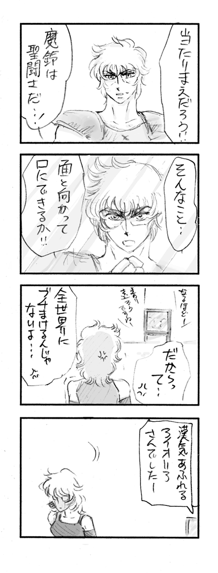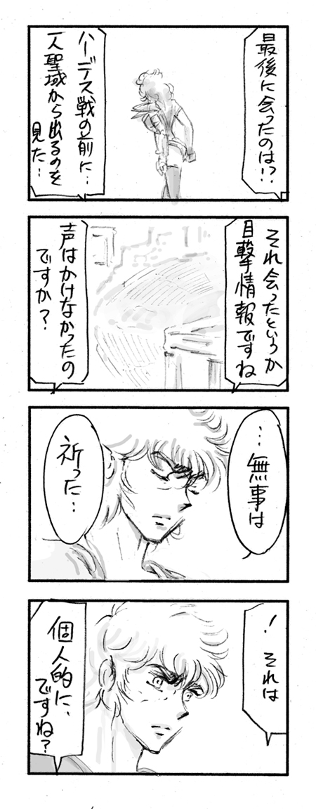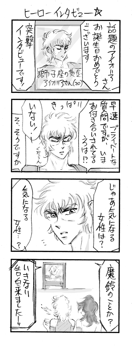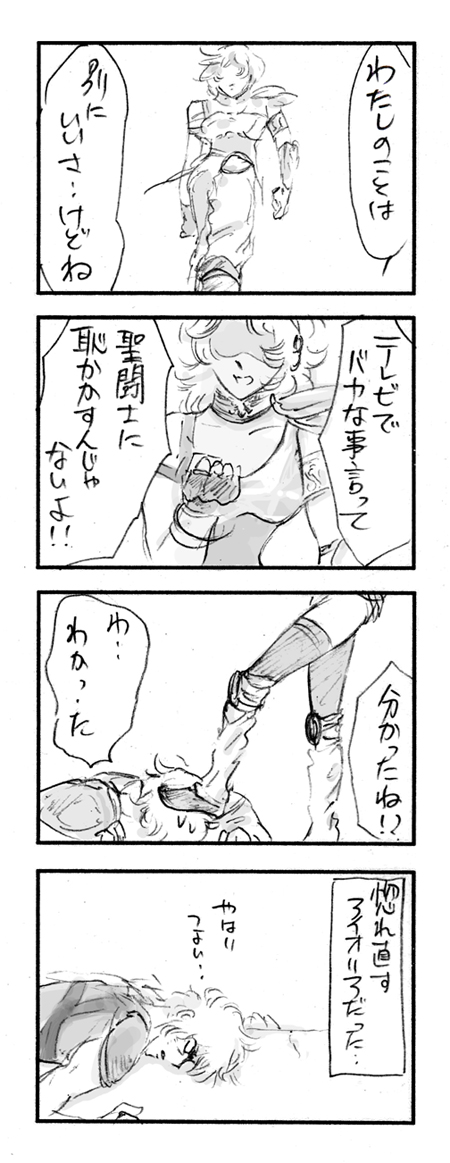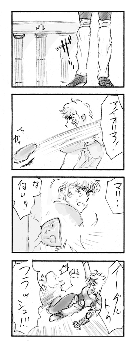 自分で描いておいてなんですが、アイオリアにしゃべらせてはいけない。聖域側が厳重に管理すべきです笑。