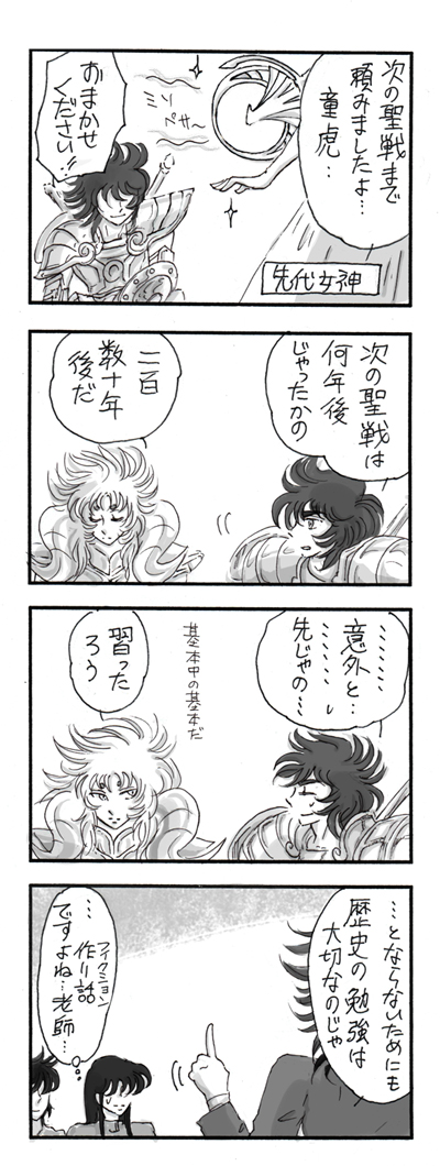 月並みですが、校長はシオンで老師(童虎)はまんま歴史か国語の先生あたり。