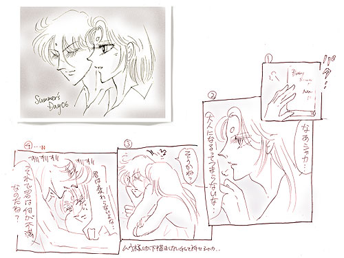 超落書きです。右から読んでください。 そして上の血迷った写真?の二人は中学生のようです。 そもそも話自体も高校生というよりも…;; あの夏の話が終わった。 恥ずかしいくらいに子供だったあの頃。 でも…今はなんだかそれすらもいとおしい。 良くも悪くも何もかもが未熟な世界… 何を私はあれほどまでにうろたえていたんだろう… パタリ・・・と日記帳を閉じて 「なあ…大人になるって…つまらないな」 というと隣の毛布から 「そうかね」 ひょっこり頭を出してくるシャカ。 「そうでもないぞ…?」 と意味ありげに微笑む。 そう思うと擦り寄ってきては 「何が不満なのだね?」 とくる。 …私が機嫌が悪いのは そんなふうに、 君がちっとも変わらないからだというのに… なんだか一人で大人になってしまったみたいで。 つまらない。 でもまあ、君は昔から、そんな奴だったよ…。 秋の長い夜が静かに更けていった。 ******************** back 原稿やれ(Topへ戻る) | |