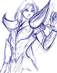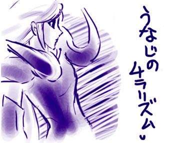 いいかげんなスケッチがありますが、だいたいこんな感じ。もう、これよりも100万倍可愛くって(略) ムウ様が移動するときって他の聖闘士もそうなんですが、相手に対して 円形にザザザって動くんですよ。それがまた間合いを計っているみたいで なかなかよかったです。あの可愛いお顔でちょっと男らしい足の開き方とか 闘う様子に萌えるんで、ムウ様のアッパー、膝蹴り、踵落しのような ハイキック、全てよだれを飲んで見守りました。 クリスタルウォールは…ちょっと巨大な下敷きみたいで無駄がない作りでした(笑)前後左右に延々と広がるわけでもなくきっちり長方形!長方形…。 スターダストレボリューションは回転しながら遠方の敵に当たるので カッコよかったです〜! スターライトエクス・ティンク・ションは…キラキラしてたような;;声だけ記憶にあります…すみません。 自分でプレイしてないとここらへん駄目ですね…。うっかり過ぎる! (追記:↑、覚えてました。めっちゃ可愛いムウ様だ!と桶乱さんと二人で大騒ぎした場面がそうでした。光の柱が立って…相手が消えて。覚えてましたよ〜良かった。でも早速もう一度見たくなってしまって仕方がありません。罪なお方…。) ゲーム自体は大変に骨が折れるそうです。格闘の方法が面倒らしいです。 見たいところだけ見られないというのも手間がかかるらしいですね。 つまり一回クリアした箇所のショートカットができないってことなんですね。 桶乱さんによると大変忍耐力が要される苦行のようだそうです。でも「ムウ様可愛いから耐える」と!素晴らしい。そして私は見てるだけでごめんなさい…。 なんといっても戦うムウ様の台詞がよかったです。 「さてここからです!」(力強くて素敵) 「そこ!」(隙がなくって・・) 「なかなかやりますね」(あくまで穏やかに) 「無駄なことです」(ムウ様容赦ないよ!) 「いきますよ!」(闘う気満々でイイ) 「無駄な戦いは避けたいものです」(勝ったときに仰る) 「覚悟はできましたか」(丁寧口調ここに極れるって感じで) 「くらいなさい!」(何回聞いてもくらいます) 「私を怒らせてしまいましたね」 注目!怒らせましたね、ではなく「私を怒らせてしまいましたね!」 これはセブンセンシズに目覚めた時の台詞だそうです!ウハア…! テレポーテーションをして相手がムウ様を見失っている瞬間、 背後に回って、 「わたしはここです」もいい!その余裕!! 山崎ムウ様はイメージのよしあしはともかく、彼自身のムウを掴んでいるような気がします。私なぞが何を言うって感じですが。 聞いてて安心感がありました。 最初にサガと対戦するとき。台詞が「サ…サガ…」なんですが プレイ二回目に出てくる台詞の別の選択肢が 「何か隠していることがあるのか」!! そしてその台詞を選択すると言葉の応酬がたしか ムウ様「私に何か隠してることがあるのか」 サガ「お前に話すことなど何もない!」 →バトル開始 サガムウ好きの油にはそれは一体どこの夫婦喧嘩ですか!??! みたいなふうに聞こえて聞こえてなりませんでした。 「ひと思いに葬ってやるのがせめてもの情け」 ってのもありましたvこれは対ムウ様専用台詞だそうです!! シオンとのお約束 ムウ様「大恩あるシオン、そのお姿は一体…」 シオン「土下座をして礼を尽くさぬか」 もありました。 そして『うろたえるな小僧(ども)』は技でした…。技なの??? そして確か桶乱ムウ様はさくっとシオンに勝っちゃってました; ゲームに負けた時、「コンティニュー選択画面」というのがあるのですが、sそこで戦いを継続=でコンティニューを選択するとムウ様「少しばかり痛手をうけただけです」と健気にも仰いますv そしてここでここで「コンティニューしない」とゲームオーバー、 ムウ様が力尽きるわけですが (「すべての小宇宙を燃やし尽くしてしまった」っていうのもありました) そのときの台詞が 「我が師シオン…貴方のもとへ…」って…。 エエ?! エエエエエエ? エエエエエエエエエエ???!!! 耳を疑いましたよ。 少なくともこのゲームのムウ様は死=シオンのところへ行くと認識していたのか… シオン亡きあと、どんな思いで生きてきたのかとか考えちゃって、折りしもサイトでシオンムウだったためもあって、感無量でした。 まさか不遇のジャミール時代、「死んでしまってもいい、むしろ死にたい、シオンに会える…」とか思って生きてきたのか?とか 「けれど使命を果たさなければ死ねない…」 そんなことも考えていたのかとかとか!!! 死を決意する様子って潔くも美しいですが、 そんな想いを秘めて…そして人知れずそんないまわの際につぶやくなんて! 卒倒しそうになりましたよ!!! あとですね。デスマスク戦のときに発覚したのですが 冥闘士派につくとあの、「倒れてないで頑張りなさい画像」、 ピンチのときに聖闘士を励ます女神の画像に相当する場面が なんとパンドラで、あの線の細いお嬢様然としてた声で 「ハーデス様のために立ち上がって闘え」とか内容