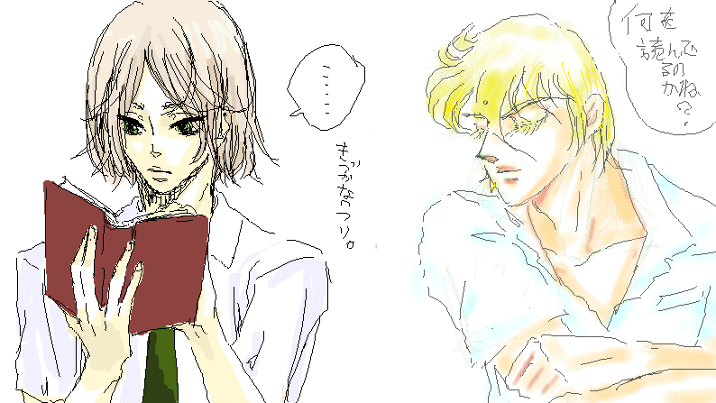 :::::::::::::::::::::::::::::::::::::::::::::::::::::::::::: 「何を読んでいるのだね」 …来た、とは思ったけど …気づかないフリ。 「ふむ。サンテックスの『南方郵便機』か。」 「え…日本語読めるの?」 「当然だ。わたしはハーフだからな」 「えっ日本人とインド人の?」 「いや、イギリス人とインド人だ。」 ・・・じゃあ何で日本語読めるのさ・・・(怒) :::::::::::::::::::::::::::::::::::::::::::::::::::::::::::: |