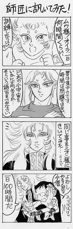 ほかに、シャカ、シュラ、カミュ、ミロ、アルデバラン、アイオリア、魔鈴、アイオロス、サガがいます。