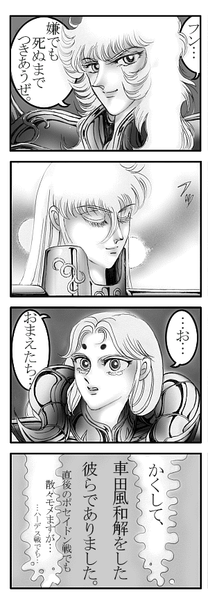 四コマにするには やはり限界がありました。黄金聖衣ももうなんだか分からないですねえ(涙)。