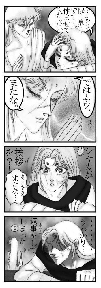 …十二宮の戦いの後なので、昼間ムウ様は修復を、