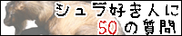 シュラ好き人に50の質問 (*一部当サイトでの内輪ネタが入っております) Q01:あなたのHNを「シュラ」の三文字を含めて教えてください。 シュ油すラま吉 Q02:あなたの誕生日をシュラの誕生日「1月12日」から数えて何ヶ月目にあたるか教えてください。 7ヶ月目 Q03:最初の出会いを教えてください。 十二宮編、多分原作コミックかと。 Q04:その時の第一印象は? 紫龍もむちゃくちゃだけどそれに説得されちゃうなんてなんて一本気な人だと思った。 Q05:シュラを好きであることに気がつき始めたキッカケを教えてください。 気軽にネタにできないことに気が付いたこと。スペインにいってしまったこと。 Q06:芽生えた気持ちを、一番初めに形にしたもの(作品でもなんでも)は何ですか? 四コマ・マニアックシュラ。今絶賛停滞中だけどちゃんと展開するんですよあれ!!しかもシリアスにー!!! Q07:一番好きなセリフを教えてください。 原作の「オレは実力もないのにでかいことをいうヤツが嫌いでな」(ウロ)さっくり酷い。 Q08:一番好きな場面を教えてください。 星空を背にした「なあ、紫龍」。あれは星空でないと決まらない。青空だとなんか違う。 Q09:山羊座の聖衣の中で一番好きなパーツを教えてください。 角といったらツノv Q10:彼の一番好きなところはどこですか?(外見でも性格でも) 竹を割るような生真面目さ。 Q11:シュラの好きな食べ物は何だとおもいますか。 ハモンセラーノかな?ふわっふわのウスウスにカットして食べて欲しい。 Q12:彼が好きな天気は何だとおもいますか。 晴天。 Q13:彼はかゆい所に手が届かない時、どうするとおもいますか。 柱の角の部分にスリスリす…る うわ想像して激しく萌えてしまいましたどうしてくれる… Q14:彼の香りはどんな香りですか。 オリーブ石鹸のにおい Q15:彼の子供時代はどんな子だとおもいますか。 今に輪をかけてシャイだと思いますv Q16:彼のこだわりは何だとおもいますか。 両手両足の研ぎ澄まし度 Q17:彼の趣味は何だとおもいますか。 オーディオ(すみません私の趣味です)、刃物研ぎ Q18:彼が体を洗うとき、一番に洗うのはどの部分ですか。 左手の小指 Q19:彼が得意な事は何だとおもいますか。 チューニング Q20:彼が心休まるときはどんな時ですか。 スピーカーから理想的な音が出たとき。 Q21:シュラとお出かけする事になりました。どこに行きますか。 ピレネーのてっぺん。 Q22:その場所で、何をしますか。 厳かにアルペン踊りをおどります。 Q23:彼の写真がありました。どんな写真ですか。 無理矢理フラメンコに参加させられて地味に涙目。 Q24:彼が泣いてました。原因は何でしょうか。 素晴らしい音を聴いて心洗われたから。 Q25:彼がえらい仏頂面をしています。原因は何でしょうか。 イヤホンのケーブルをねずみにかじられたから。 Q26:彼が何かを飲んでいます。何を飲んでいますか。 水代わりの安酒 Q27:彼が音楽を聴いています。何を聞いていますか。 ベートーベンの『英雄』。 Q28:彼が机に向かって書き物をしています。何を書いていますか。 忘備録? Q29:彼が本を読んでいます。何を読んでいますか。 『ラジオ技術』実は無線もいける男 Q30:彼が必死に何か作っています。何を作っていますか。 オリジナルの改良アンプ Q30:日常生活の中でシュラを思い出す時はどんな時ですか。 スペインの地図を見たとき。オリーブ石鹸を使ったとき。 Q31:あなたが一番シュラ(の様にな)った時はどんな時ですか。 スペインの田舎でスペイン語がまったく通用しなかったとき…目が点に…。 Q32:あなたがエクスカリバーを使えるとしたら、どんな時に使いますか。 人生という名のゴルディウスの結び目を一刀両断したい笑 Q33:あなたがジャンピングストーンを使えるとしたら、どんな時に使いますか。 電車に乗り遅れそうなとき。いやほんとに。改札とか階段とか! Q34:あなたがシュラのセリフを言うとしたら、どのセリフをどんな場面で言いますか。 「かわしたつもりだろうが次はそうはいかんぞ」ボーリング場かな。ノーコンなのでいつもかわされます。 Q35:原作聖衣とアニメ聖衣、どちらがお好みですか。 原作。蟹とのバランスがいい。 Q35:山羊座聖衣と山羊座冥衣、どちらがお好みですか。 夜は冥衣、昼は黄金。保護色。 Q36:あなたがシュラなら、スペインに行ったとき何をしますか。 ピレネーで跳ね回る。 Q37:シュラにとって、他の黄金聖闘士とは何だと思いますか。 仲間。 Q38:シュラにとって、教皇とは何だと思いますか。 女神の地上代行者。いや本気で。 Q39:シュラにとって、アテナとは何だと思いますか。 神。 Q40:シュラにとって、デスマスクとアフロディーテは何だと思いますか。 悪友。 Q41:定食屋のメニューに「シュラ丼」とありました。具は何ですか。 普通に山羊。肉とチーズ。でもなぜか刻み海苔たっぷり。 Q42:街で見かけたポスターに「シュラ」の一言。どんなポスターで、なんの宣伝ですか。 シュラわせなら手を磨こう♪インフルエンザ予防啓発ポスター。 Q43:新聞テ