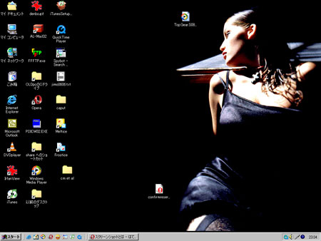 桶乱さんのブログにて見てしまいました。![]() *デスクトップバトン 》ルール これを見た人は必ずデスクトップのスクリーンショットを日記に載せます。執行猶予はありません。あまりに名誉毀損だという場合には、アイコンやファイル名に修正を加えてかまいません。しかしあまり修正しすぎるとおもしろくないのである程度自粛しましょう。簡単な説明をつけると良いですね。さあ、早速すべてのウィンドウを最小化しましょう! ----------------------------------------- …だそうです(σ・ω・)σ とのことです。 壁紙はレティシア・カスタLaetitia casta嬢の写真を加工したものです。 家人も見る環境なので、極力無難に。ハイ…綺麗なお姉さん好きです…。 自分しか見なかったらもちろん一面にムウ様公式図像を!!そりゃあもうどどーんと! ちなみにそのとき開いていたHPはスクリーンショットの撮りかた講座だったりします。 ようやく覚えましたよ(遅)。 |