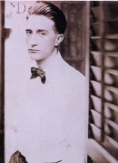 デュシャンの『泉』で語られるは象徴的な意味は…<芸術品 :泉:聖なる侵しがたいもの> にそれぞれ対応して、 <既製品 : 汚(排泄物) :欲望の対象> ↑のように解釈されることが多いです。 デュシャンの『泉』の本物は失われ、12のレプリカとなって 世界中に散ってます。レヴィーンは作品を6つセットで鋳造。 遅くとも98年の展覧会では『仏陀』と いうタイトルで出品してます。 …なぜ『仏陀』なのかは不明。 ?デュシャンの偽名のサインのRichardはフランス語で『成金』 ?排泄物はしばしば隠喩として黄金になぞらえられる →だから金メッキか?(…苦しい…) ?アルプ(1887−1966)やブランクーシ(1876−1957)などの 詩や隠喩、暗示に溢れたタイトル付けをする彫刻家の影響? などなど考えることはできますが…。 今回の展覧会で面白かったのは本家のレプリカと並べたことだろうと思います。金色に光り輝くレヴィーンの男性便器は実に堂々としていてデュシャンの『泉』がすすけてみえました。 伝説と化した『泉』も落書きのあるただの既製品にすぎないという視点(おそらくデュシャンの意図に最も近い?)を観る側に提供していたともいえるような気がします…。 しかしデュシャンは男前でしたね(1920年頃の写真。1998年8月の『美術手帖』p38より転載) | |
