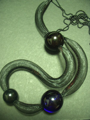 そして手芸家の友人に誘われて表参道のla droguerieに 行って材料を買って作ってみた"黒サガムウ" ネックレス。 …この螺旋部分の中身がキラキラ光るチェーンが入っていて 無駄に宇宙的というか異次元的というか…ビーズは勿論紫と黒です。 他に緑も買いました。大きさは五百円玉くらい。 ![]() 下の図はやや実物より小さいくらい。ビーズだと思うと巨大です。