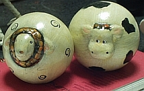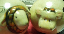 そして私がメエメエ騒いでいたら先日同居している 妹が、羊と牛の置きものを買ってきてくれました。 なんと羊と牛ですよ!! 丸いので上に載せるのは難しいのですが(←?) くっつけて並べてみました。…仲良しということで(笑)
