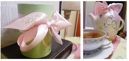 文字ばかりなのでリボンが大きくて可愛いお茶の缶。(お茶というよりリボンがメインで…このリボンいろいろ使えますよね…羊のラッピングなどに…!と思考があらぬ方向にトリップしたのは内緒です。)いやしかしさすが老舗、このティーバックが布製(ガーゼ)だったのに感動しました。で、グリーンとピンクとゴールド…はた!と気が付いたんですがシオンカラーだ…!私事で恐縮ですが、油の電波原稿が最初の難関をとおったそうです。 実は単純ながら前代未聞のポカがあるのに師匠が頑張ってくれました。 まだ二つ関門があるんで安心はできないんですが、ちょっとホッとしました。 でも全部結果が出るまでしばらくおとなしくしてようと思います。 他の人が自分のために頑張ってくれてるときに本人としてはそうそう遊べないっていう心境です。 更新はできるだけしたいと思ってますが、 もしあまりにもりもりと更新してたら油は人でなしってことでひとつよろしくお願いします。 |