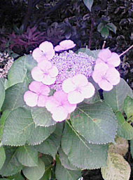 写真は紫陽花(ガクアジサイ)です。こんもりしてる西洋紫陽花を見慣れているとちょっと寂しいような気もしますが、これはこれで楚々としていいとか思います…v紫陽花といえば、シーボルトとおタキさんの話が有名ですが、普通に学名は水を湛える大きな葉のHydrangea macrophylla 、というものなんですね。ちょっと調べるまで毒があるなんて知らなかったです。…羊中毒者が何を言うって感じですが笑